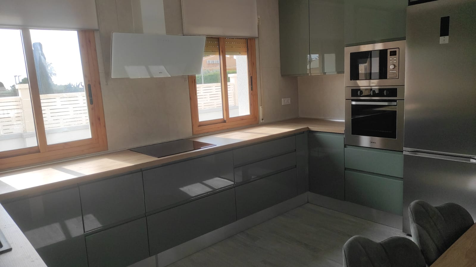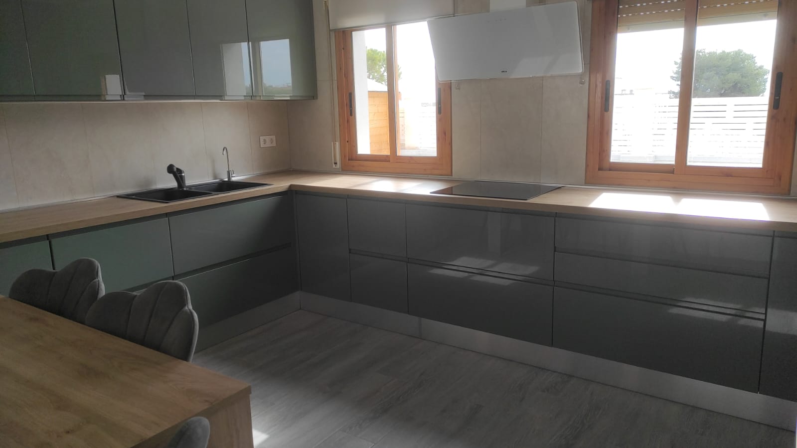 La cocina moderna totalmente equipada ofrece gran capacidad de almacenamiento y funcionalidad, además de contar con zona de lavadero independiente, muy práctica para el día a día.